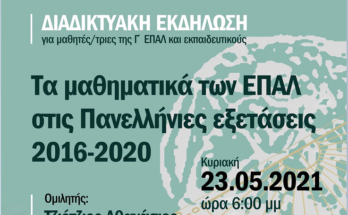 EΚΠΑΙΔΕΥΤΙΚΑ ΝΕΑΔιαδικτυακή εκδήλωση για τις εξετάσεις στα Μαθηματικά ΕΠΑΛ 20 Μαΐου, 202120 Μαΐου, 2021